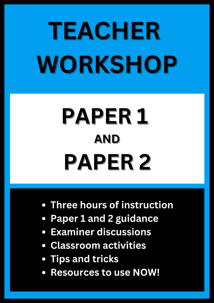 Our workshops provide an excellent opportunity to build relationships while mastering the IB English A assessment model. We’ve marked thousands upon thousands of papers and oral recordings, and we’re eager to share our examiner insights to help your students achieve their desired grades. Participants also gain access to our resource folders, packed with ready-to-use lessons and activities. Teachers rave about its value, and we know you’ll find it super-helpful as you continue navigating the course.